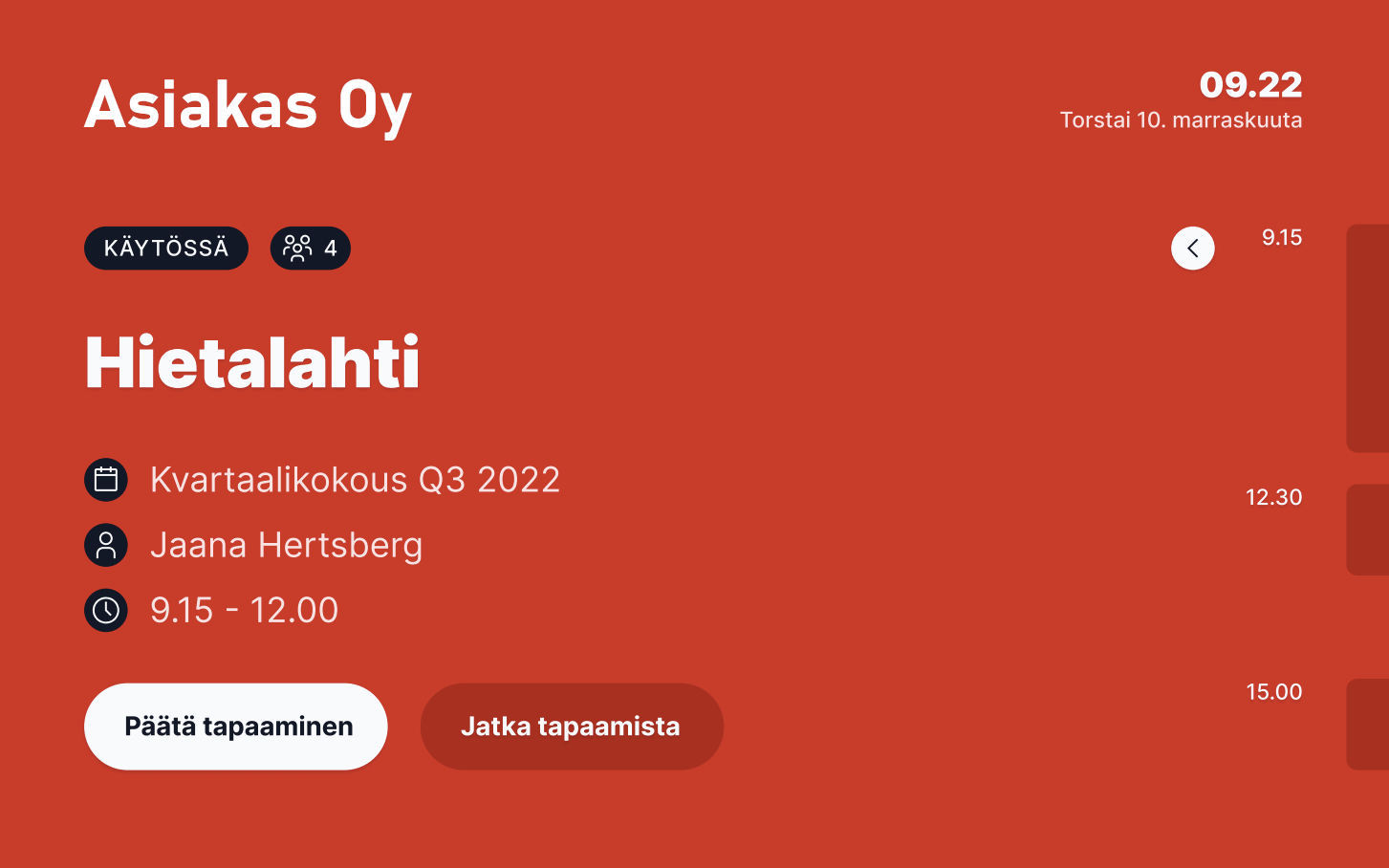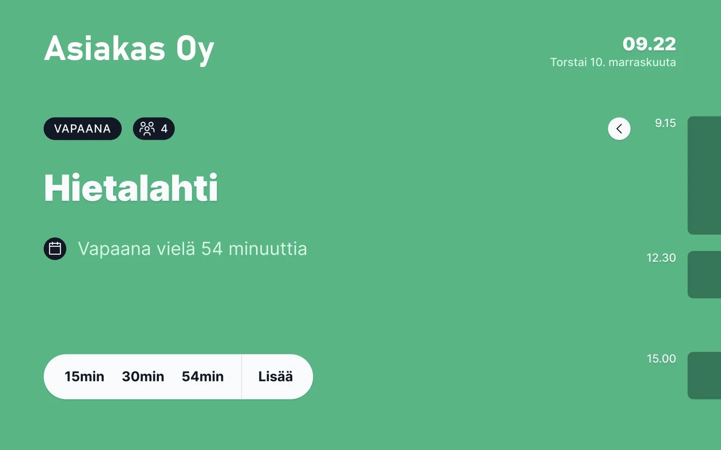 I decided to approach the task at hand with universality over everything else. An idea of an ample visual confirmation of availability and the current state of a meeting room guided me through the project. From the users perspective, all necessary information would be at a glance.